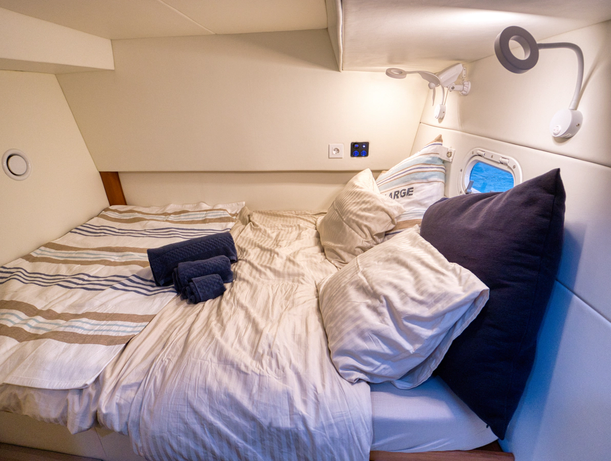 The TWIN HORIZONS’ shallow draft allows access to pristine beaches and hidden coves that deeper-hulled yachts cannot reach. This opens up exclusive destinations for swimming, snorkeling, and beach exploration.