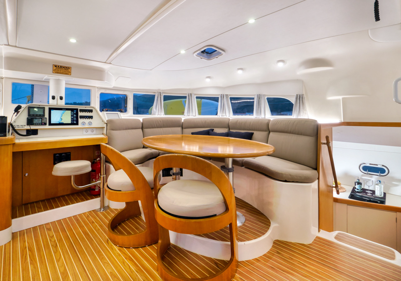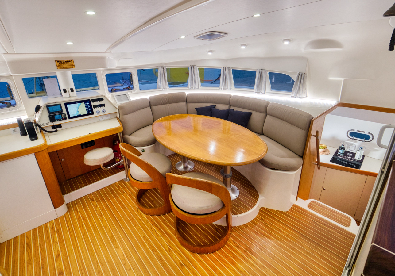 The catamaran’s design provides natural air circulation and panoramic views from all areas, creating a unique connection with the marine environment. Multiple outdoor spaces allow guests to find their perfect spot for relaxation.